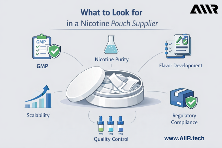 Choosing the right nicotine pouch supplier is critical to product quality, compliance, and long-term brand success. This guide outlines key evaluation criteria—including GMP standards, nicotine purity, flavor development, stability testing, scalability, and regulatory expertise—to help distributors and private label brands select a reliable manufacturing partner.